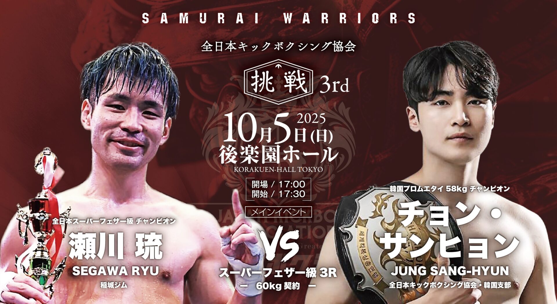 全日本キックボクシング協会 10.5 後楽園ホール:瀬川琉、勇生らが韓国勢と5対5対抗戦